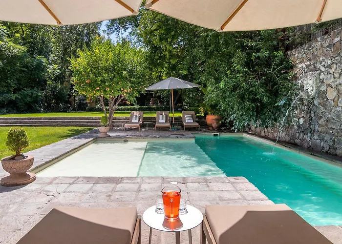 Situato a circa 1 km dal Mercato dell'Artigianato, l'Hotel Villa Santa Mónica San Miguel de Allende, a 5 stelle, offre una cassetta di sicurezza e sicurezza 24 ore. L'hotel vanta una piscina, Wi-Fi nelle aree comuni e camere con viste sul giardino.